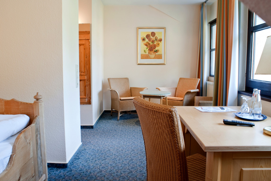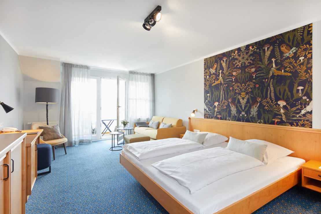 The overnight price includes buffet breakfast, the vitality area with swimming pool and sauna as well as parking. In all rooms: RhönSprudel Original Water 0.25 l.